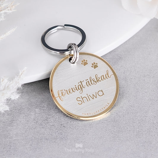 Exklusiva namnbrickor med personlig design för hundar och katter