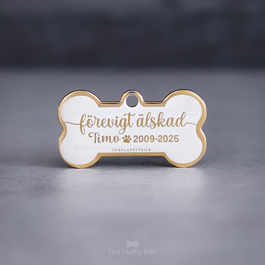 Exklusiva namnbrickor med personlig design för hundar och katter