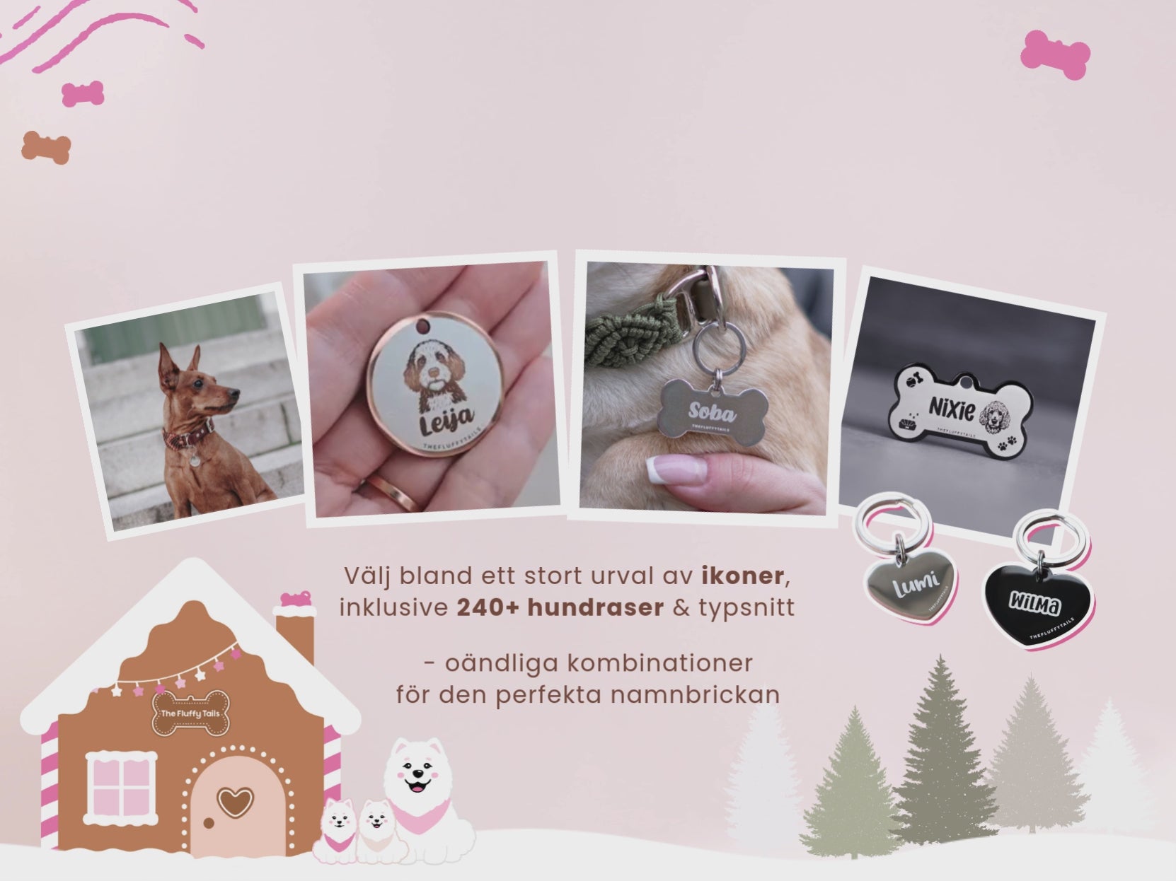 Med vårt unika designkoncept kan du enkelt skapa en namnbricka till din hund eller katt som garanterat sticker ut från mängden. Välj bland 33 typsnitt, 390+ ikoner inklusive 240+ hundraser.
