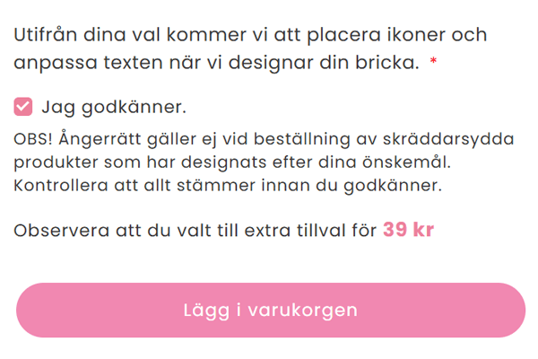 Kontrollera att stavning och information stämmer. Bocka i rutan "Jag godkänner" och klicka på "Lägg till i varukorgen". Klart! ʕ•ᴥ•ʔ