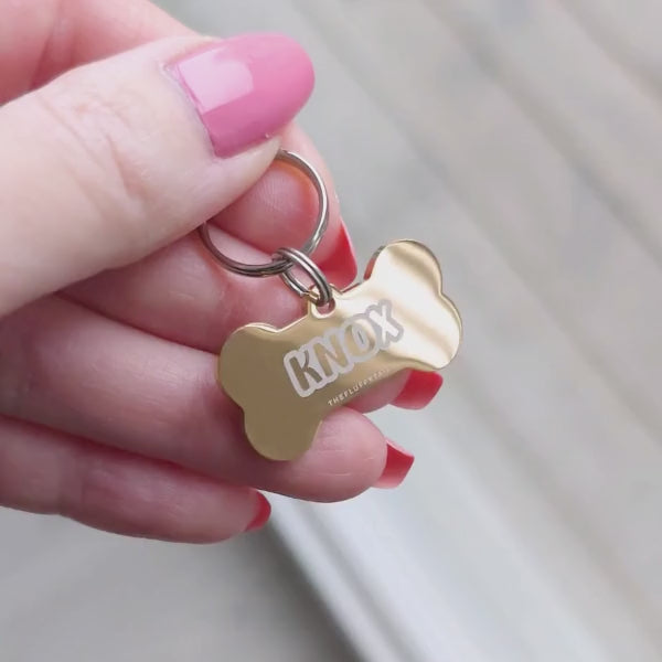 Ge din hund eller katt en unik namnbricka som verkligen skiljer sig från de traditionella. Gravyr på både fram- och baksidan, en slitstark nyckelring och hänge av rostfritt stål ingår.