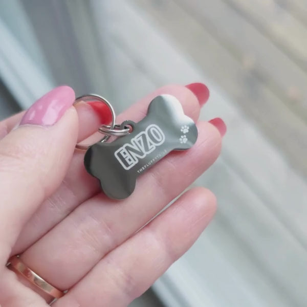Ge din hund eller katt en unik namnbricka som verkligen skiljer sig från de traditionella. Gravyr på både fram- och baksidan, en slitstark nyckelring och hänge av rostfritt stål ingår.