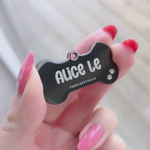 Ge din hund eller katt en unik namnbricka som verkligen skiljer sig från de traditionella. Gravyr på både fram- och baksidan, en slitstark nyckelring och hänge av rostfritt stål ingår.