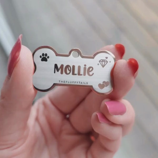 Designa en unik namnbricka till din hund - exklusiv och högkvalitativ med egen design och personlig gravyr. Våra namnbrickor är tillverkade av rostfritt stål och är både hållbara och väderbeständiga - perfekta för alla era äventyr tillsammans!